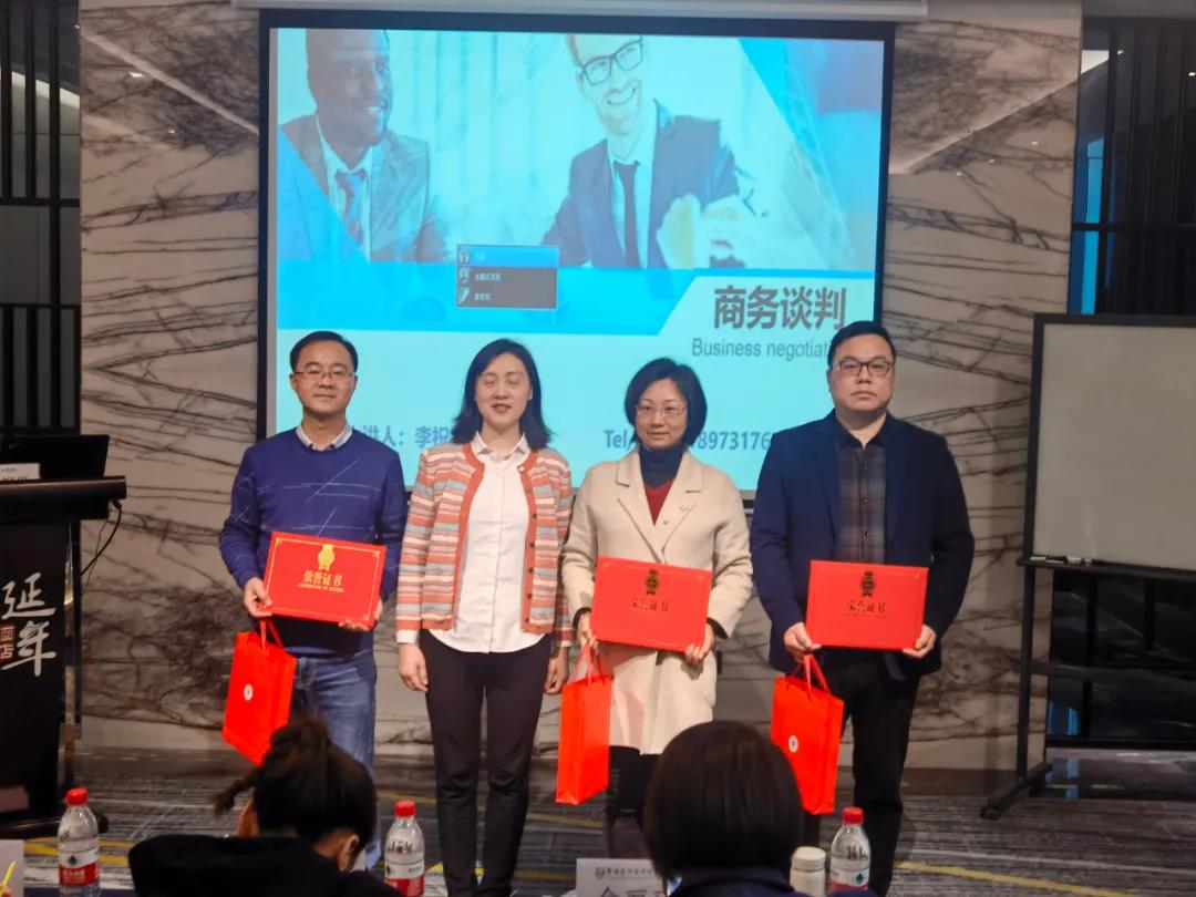李教授分别为丁佑胜、张大志、王海霞三位年度优秀学员颁发荣誉证书和奖品。