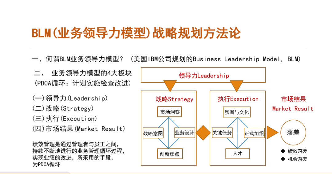 丁老师提到了BLM(业务领导力模型)战略规划方法论的8个准则和执行力的四个纪律,并对8个准则做了详细介绍。