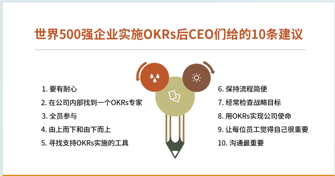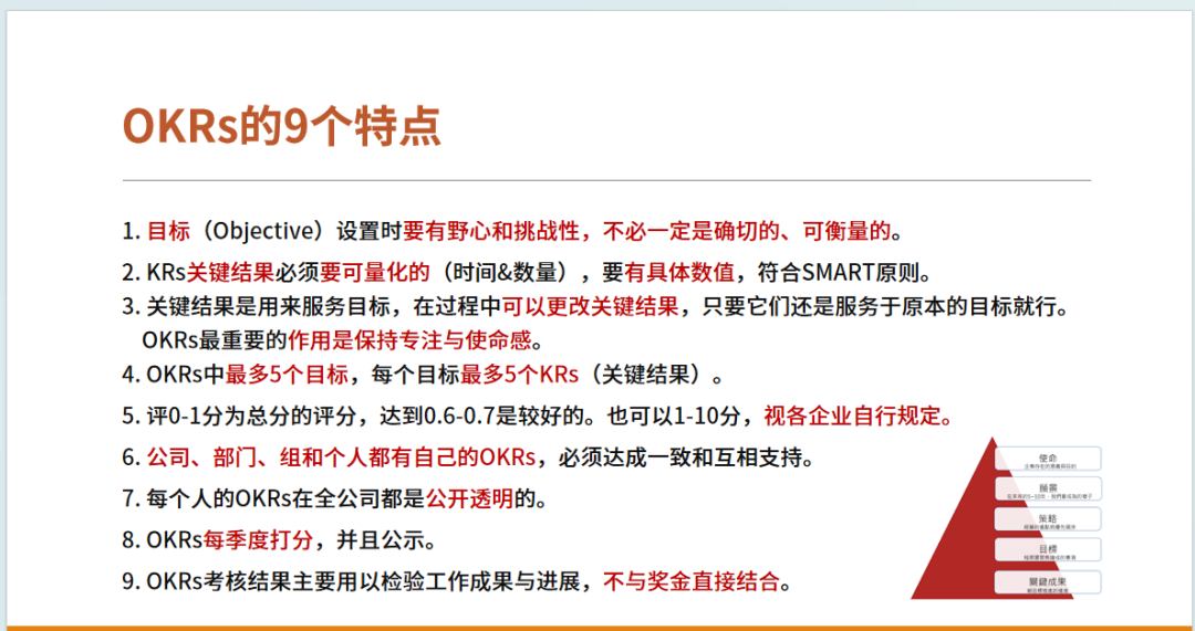OKRs是企业进行目标管理的系统和工具,是一套目标沟通、制定、展示和回顾的流程,是一种能够促进员工与团队协同工作的思维模式,更是帮助企业达成战略与使命 最佳管理模式!
