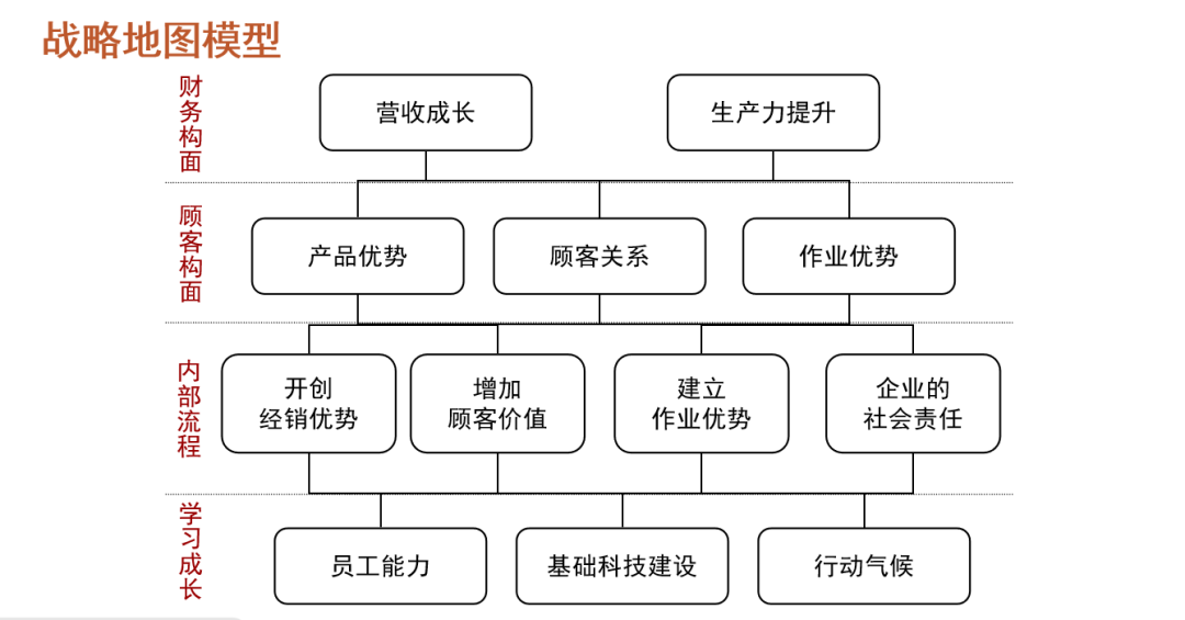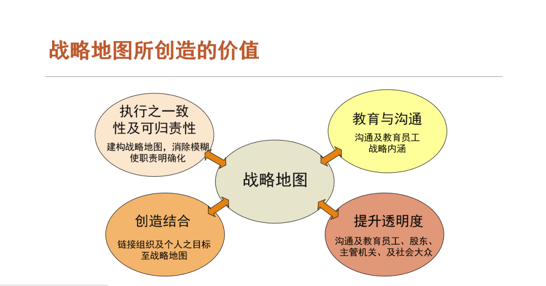而战略地图则是对组织战略的链接、描述、执行,是组织战略的可视化管理体系。