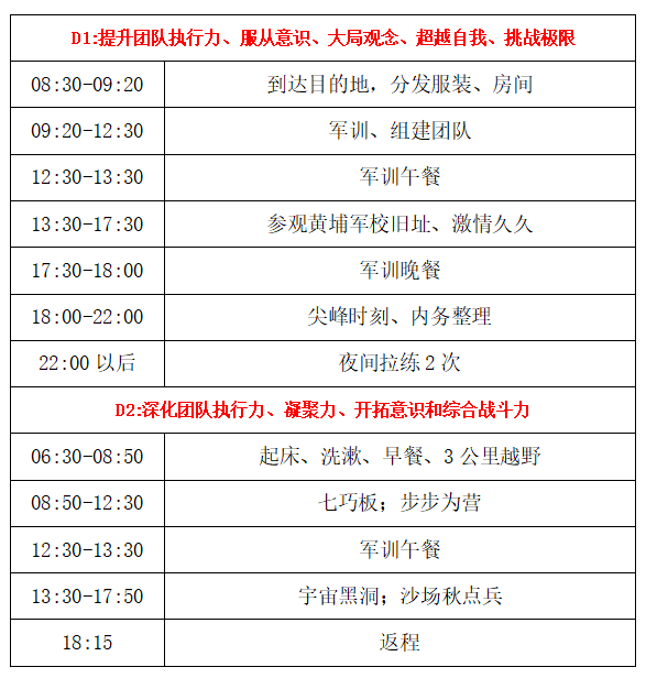 v本次活动院方在深圳、东莞设有接送站。不乘坐巴士的学员,请在周六上午8:20前赶到。并在黄埔军事主题园停车场集合,人员到齐后由教官带领大家参加军训拓展;
