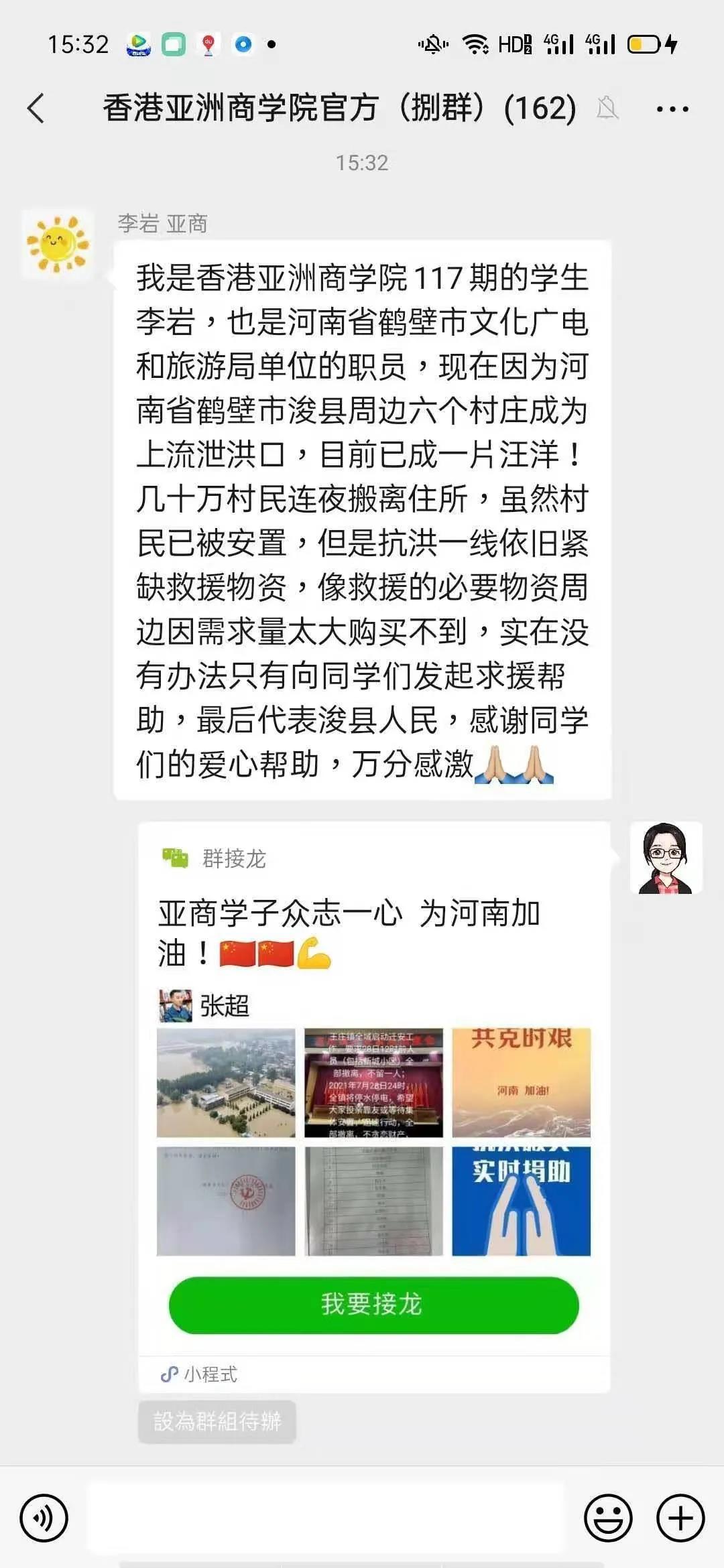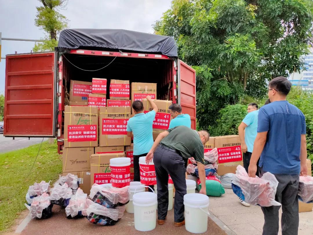 日前,河南省郑州及周边县市发生了千年一遇特大暴雨,防汛形势严峻,一方有难,八方支援!香港亚洲商学院学子正能量满满的,亚商学生处主任古丽如和招生中心负责人罗东彬马上成立救灾小组,在30个小时内,共募得60多箱救灾物资:有抗洪沙袋、雨衣雨靴、药物、消毒水、铁锹、手电筒等共计6870件。