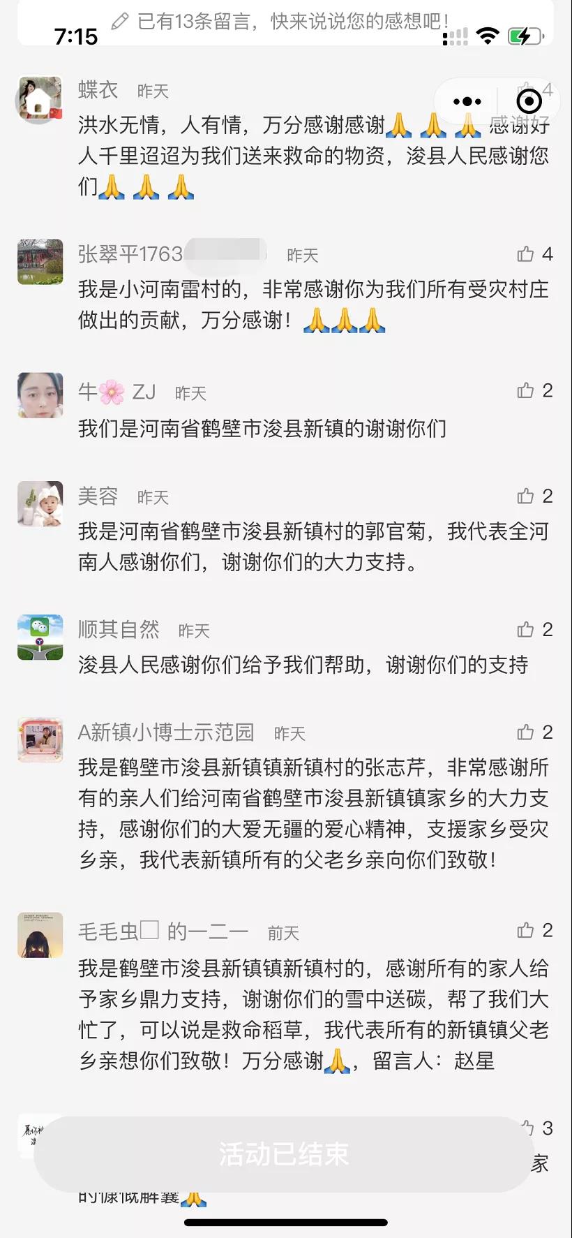 7月28日,就职于河南省鹤壁市文化广电和旅游局的亚商117期学生李巖提供灾区信息,指河南省鹤壁市浚县受特大洪水自然灾害,县城周边村庄几乎全部淹没。因为河南省鹤壁市浚县周边六个村庄成为了上流泄洪口,目前已成一片汪洋!几十万村民连夜搬离住所,虽然村民已被安置,但是抗洪一线依旧紧缺救援物资,像救援的必要物资周边因需求量太大购买不到,实在没有办法向亚商请求支援!
