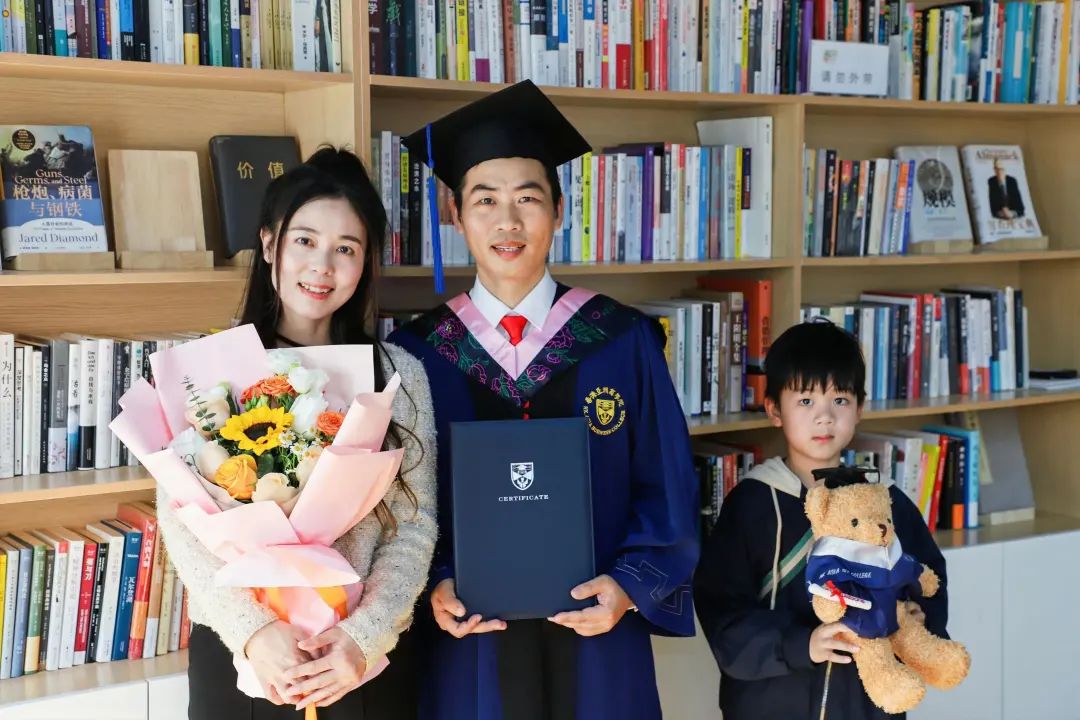 在现场助教老师的指引和指导之下,学员们有序地领取并换上了自己的学位服。在毕业典礼开始之前,学员们或三五成群、或与家人一道合影留恋,共同铭记这一珍贵的人生记忆。