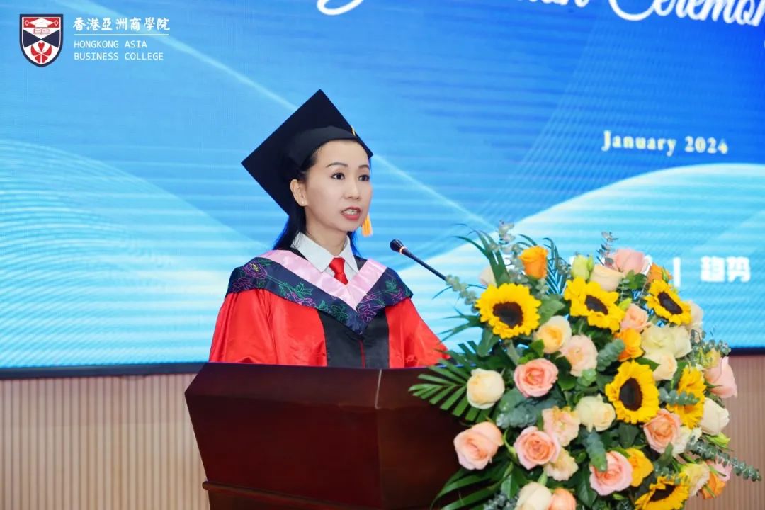今天我们相聚在这里举行二零二三届香港亚洲商学院冬季毕业典礼,庆祝我们两年学习生涯的结束,我们怀着感恩的心情,共同见证这一时刻的到来。