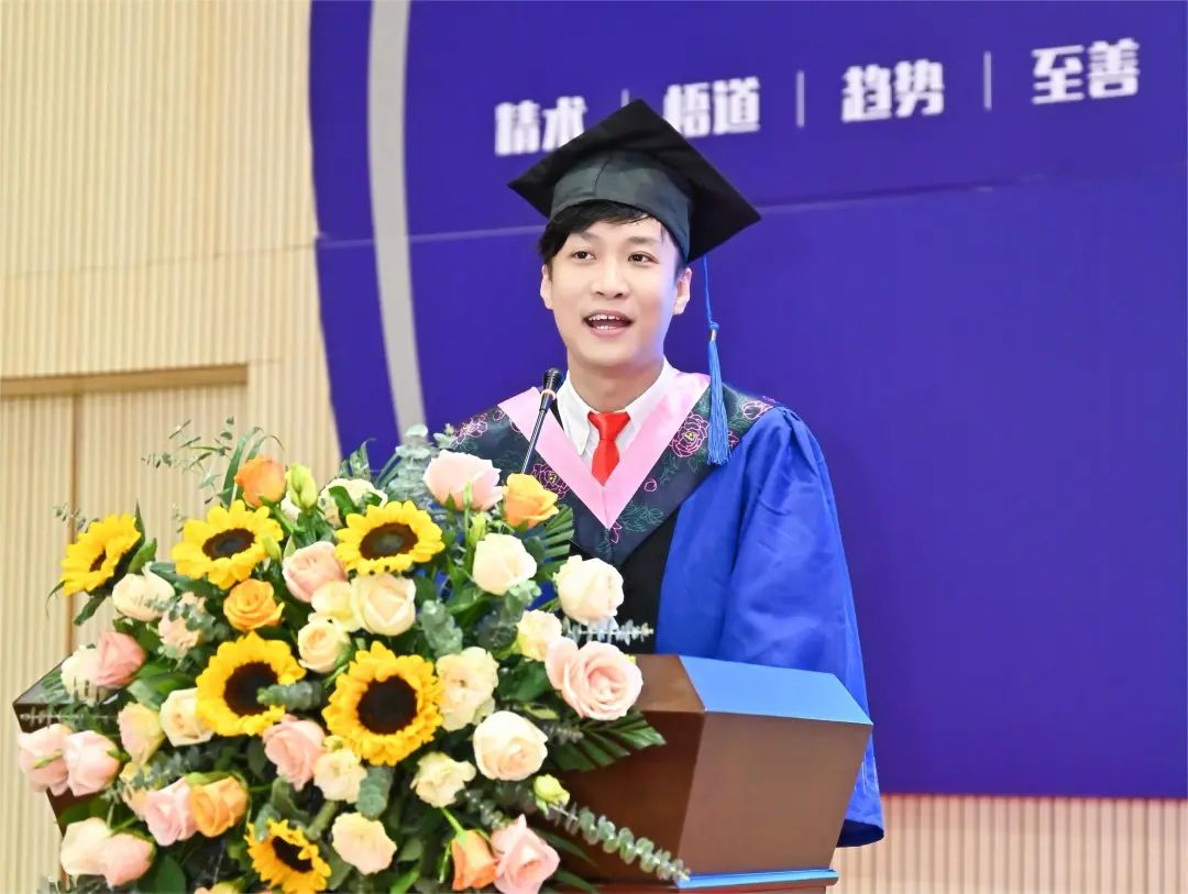 非常荣幸作为导师代表在这里发言,首先要祝贺同学们以亚商毕业研究生的身份,迈上了人生新的台阶,开启属于你们的崭新的未来征途。