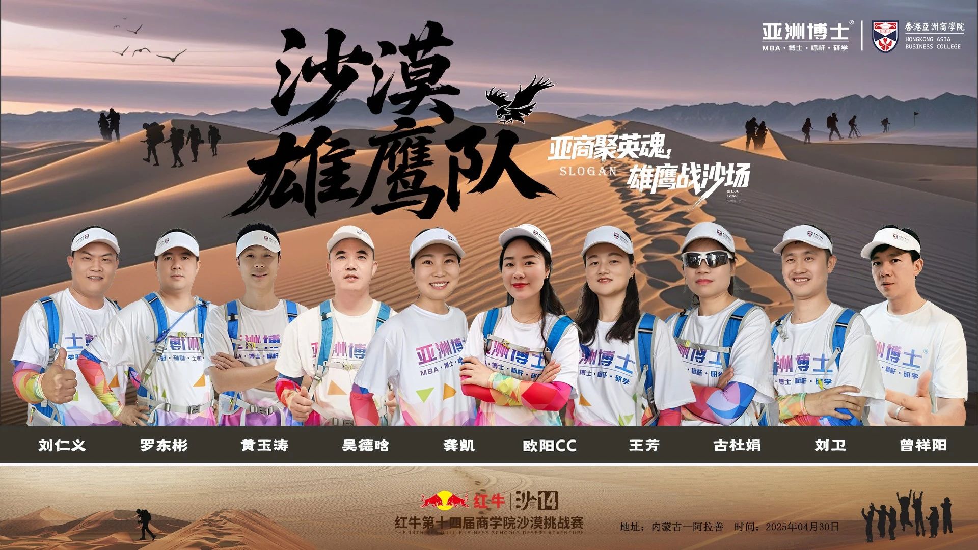 香港亚洲商学院雄鹰代表队以“同赴沙海,共塑未来”为主题,用坚持与毅力书写亚商人的精神面貌。